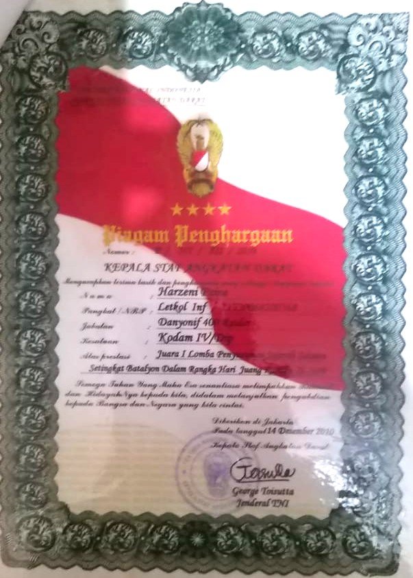 Menulis buku bagi seorang prajurit TNI merupakan prestasi luar biasa, karena tidak banyak orang yang bisa melakukan. Karya tulis dalam bentuk buku sejarah ini, menjadi semcam ‘tinta emas’ yang telah Harzeni ditorehkan dalam perjalanan karir militernya.