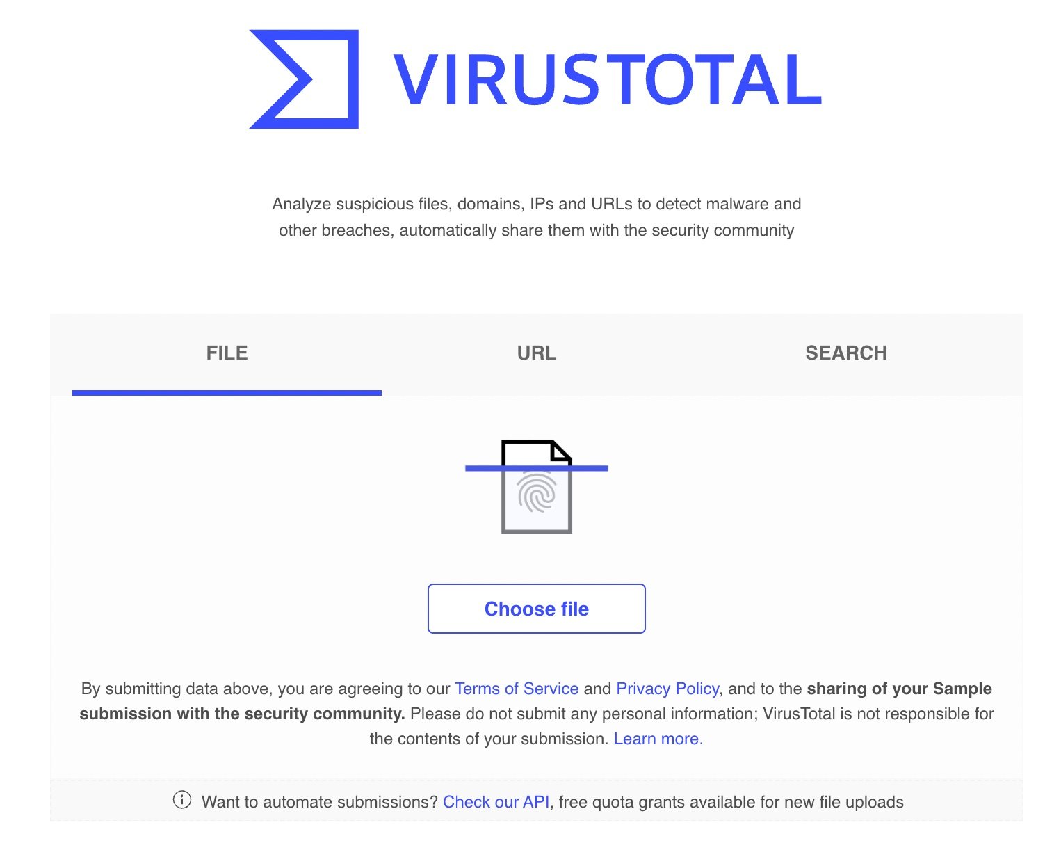 1. Buka situs https://www.virustotal.com melalui browser Anda.