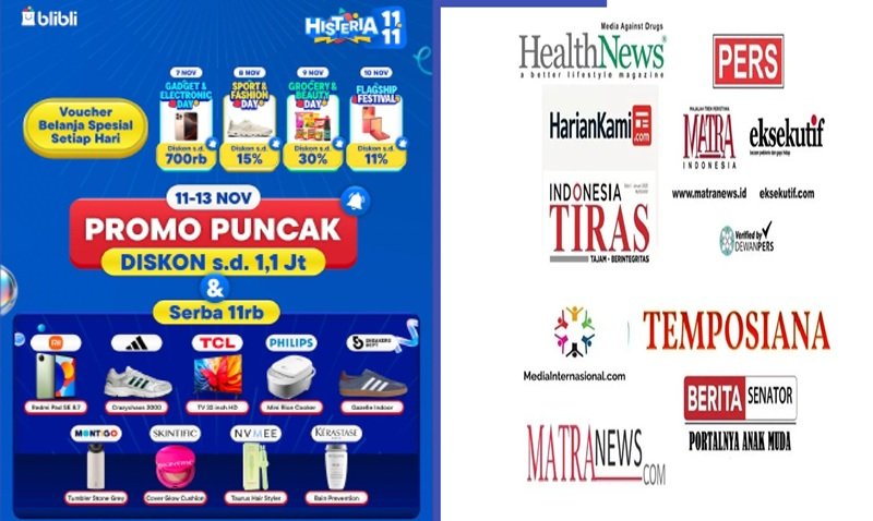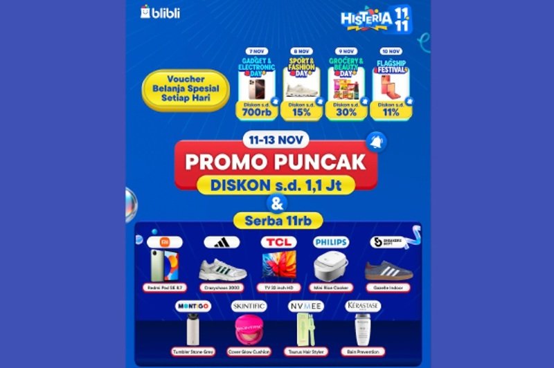 Anda bisa dapatkan berbagai promo dengan harga terbaik, saat promo 11.11 Blibli Histeria. Selain memiliki diskon yang besar, Anda juga bisa mendapatkan berbagai promo menarik lainnya seperti gratis ongkir dan juga barang dijamin original. (*)