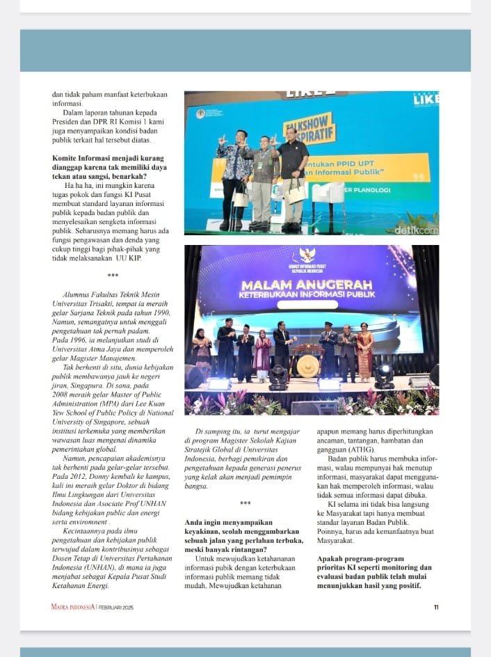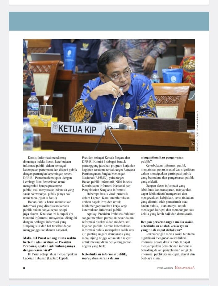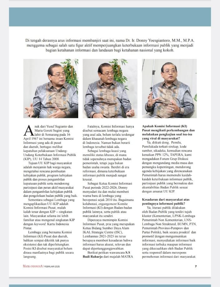 Donny Yoesgiantoro Ketua Komisi Informasi Pusat RI Diwawancara Lengkap di Mjl Cetak MATRA Februari 2025 – Berita Senator