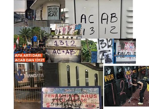 Secara harfiah, ACAB adalah singkatan dari “All Cops Are Bastards” atau “Semua Polisi Bajingan.” Versi angkanya, 1312, merujuk pada posisi huruf di alfabet: A (1), C (3), A (1), B (2).