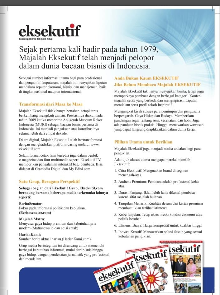 Majalah Eksekutif juga menjadi media andalan bagi para pengiklan.