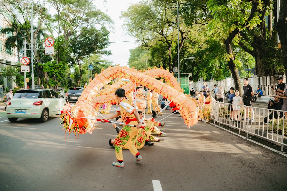 Realitanya, cuaca tak mampu meredam gegap gempita Parade Imlek Nusantara. Payung-payung warna-warni mengembang, kamera ponsel terangkat, dan warga tetap berjejal di sepanjang rute pawai.