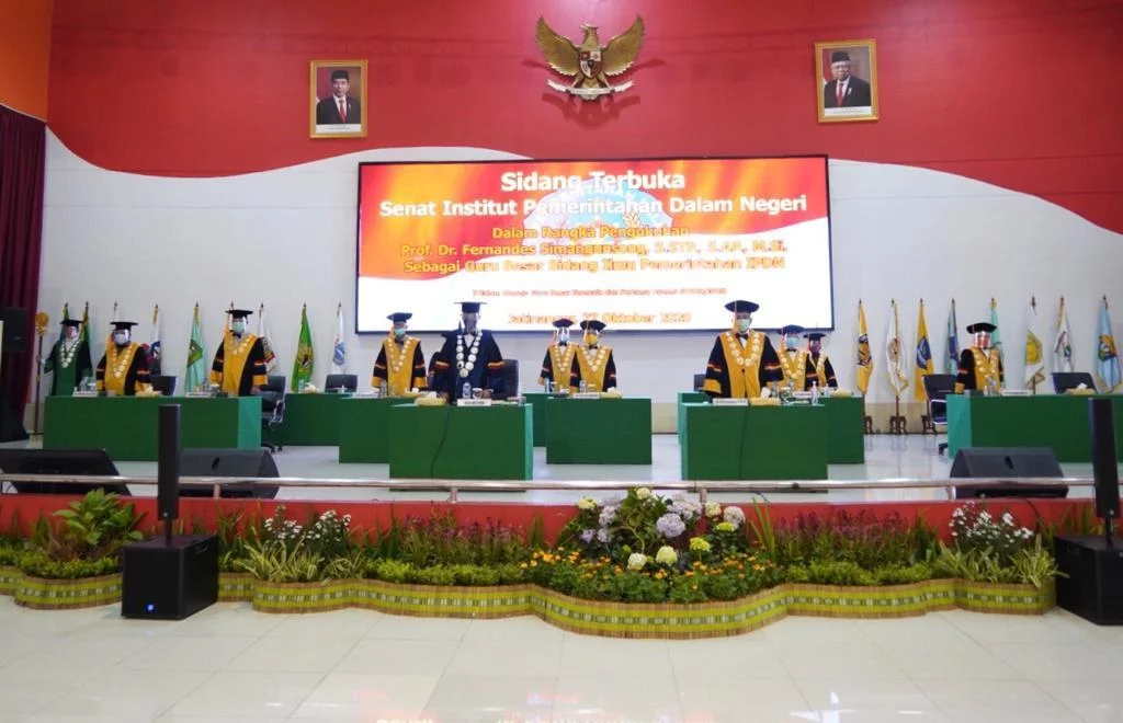 Rektor IPDN Dr. Hadi Prabowo, M.M yang sekaligus merupakan Ketua Senat IPDN hadir dalam acara “Pengukuhan Prof. Dr. Fernandes Simangunsong, S.STP, S.AP, M.Si sebagai Guru Besar Ilmu Pemerintahan IPDN”.