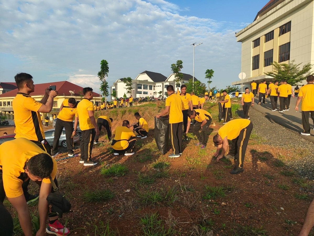 Pagi itu, halaman Mapolda Kalimantan Selatan tampak berbeda. Di bawah sinar matahari yang mulai meninggi, derap langkah ratusan personel Polda Kalimantan Selatan terdengar menyatu dengan suara sapu yang menyentuh aspal.